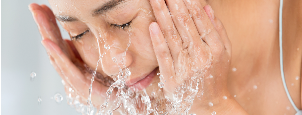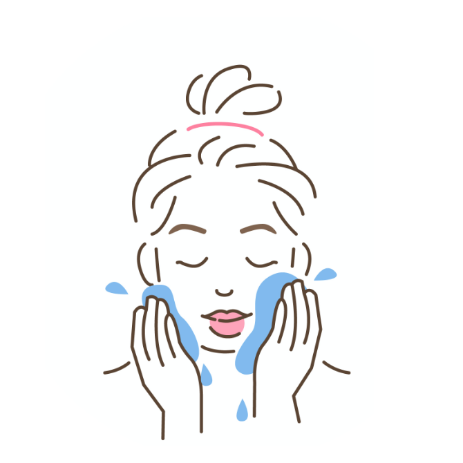 03顔全体の汚れやメイクが浮き上がってきたら、ぬるま湯または水で洗い流します。